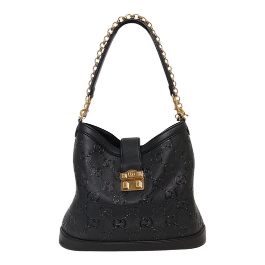 Gucci Black GG Embossed Leather Medium Wonka Bag