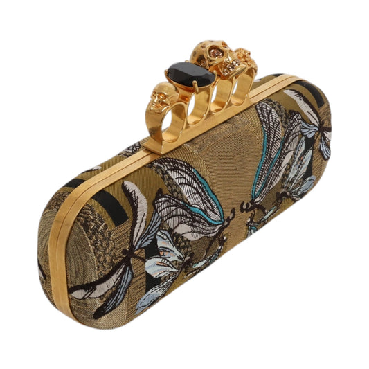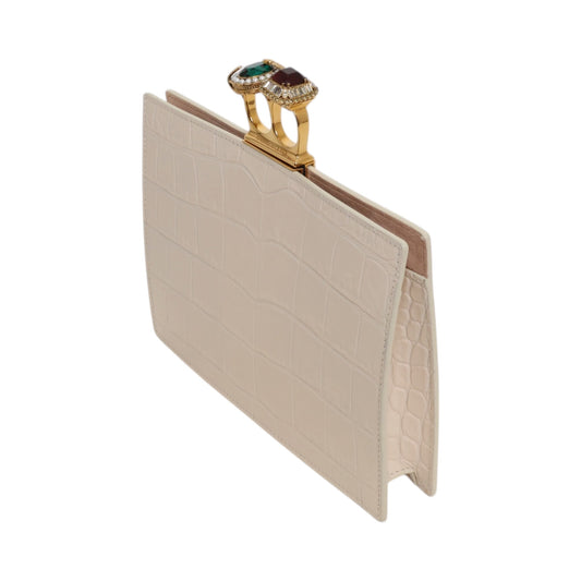 Alexander McQueen Jeweled Double Ring Crocodile-Embossed Clutch Bag