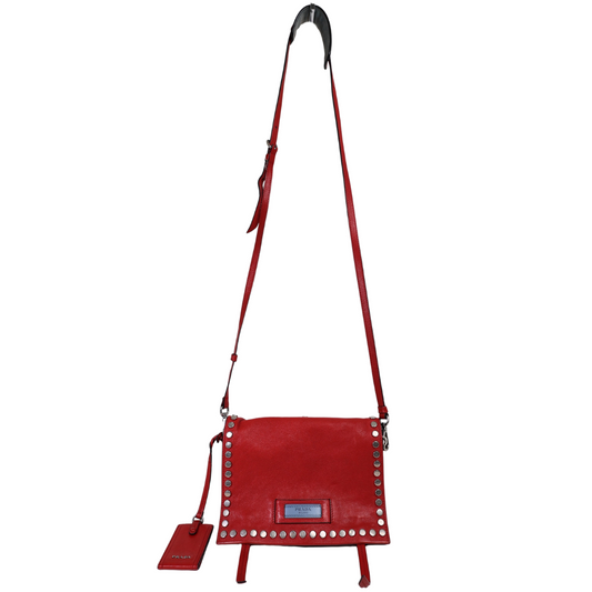Prada Glace Calf Etiquette Studded Messenger Bag