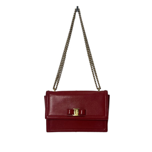 Salvatore Ferragamo Vara Bow Chain Flap Leather Medium Bag