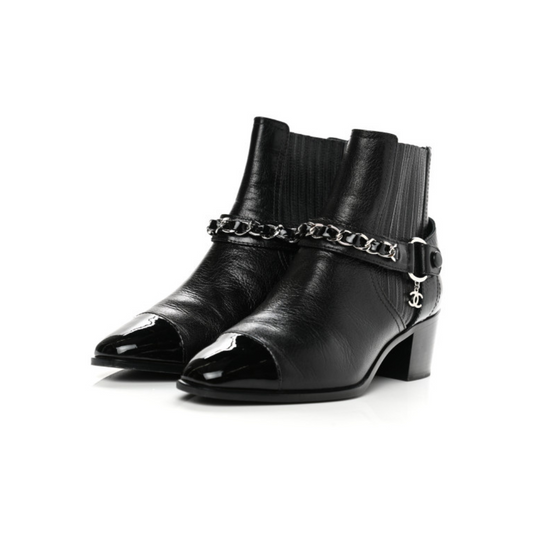 Chanel CC Chain Block Heel Bootie (Size 41)