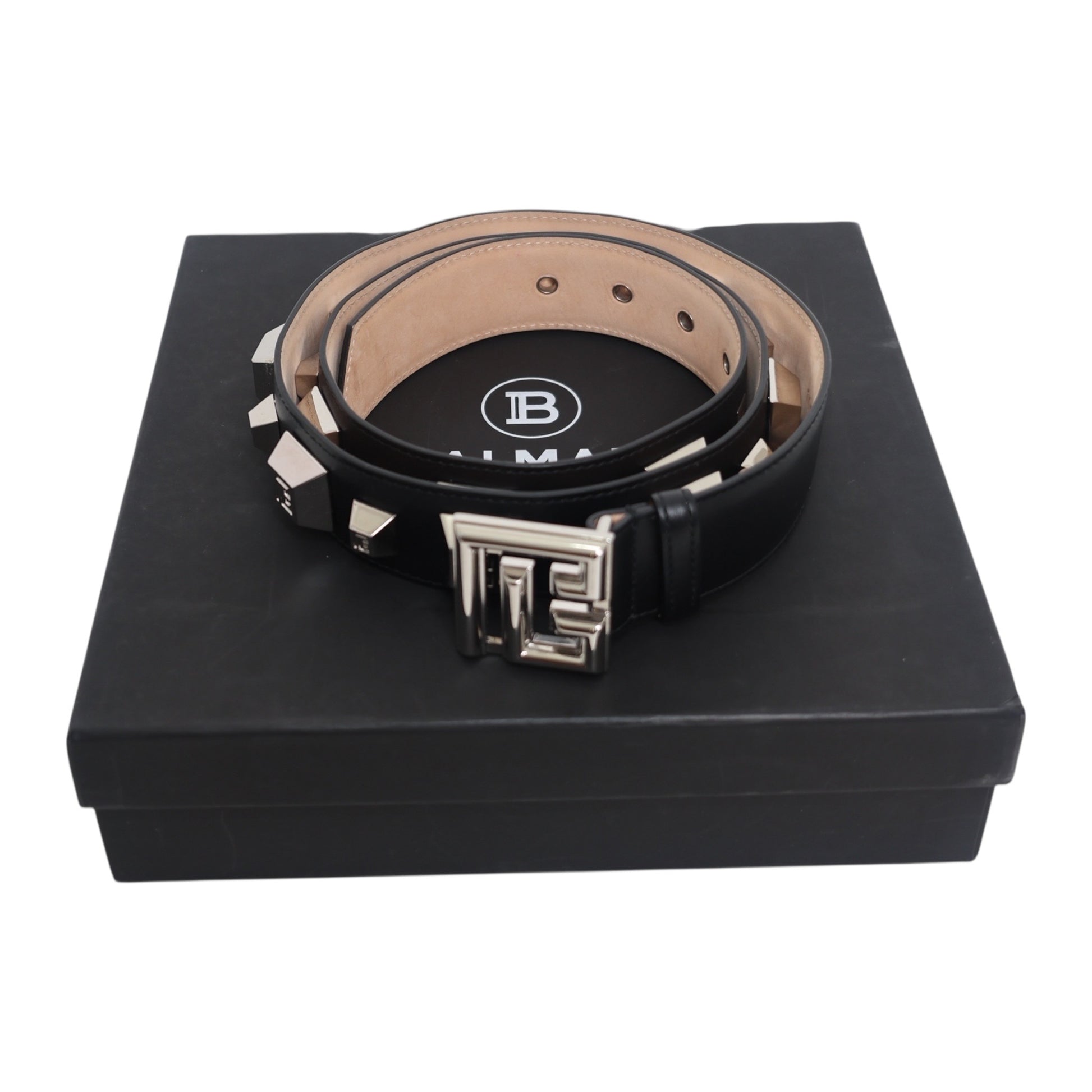 Balmain Paris Leather Studded Belt with Box